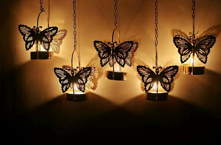 iron butterfly shape tea light wall hanging candle holders for home decor or diwali decoration